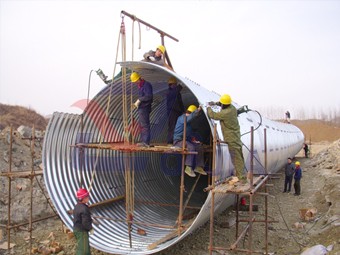 拼装型金属波纹涵管采用弧形波纹板拼装而成,广泛应用于公路、铁路的涵洞、通道、小桥、隧道、临时便道、排水管道以及各种矿场巷道挡墙支护等工程。