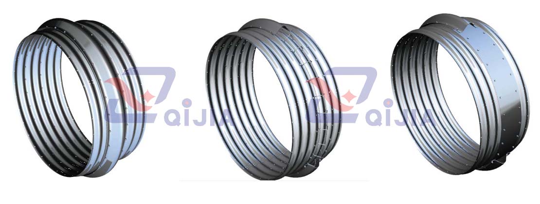 (3)在波峰带有连接孔的波纹板的外侧贴服带有连接孔的钢带。